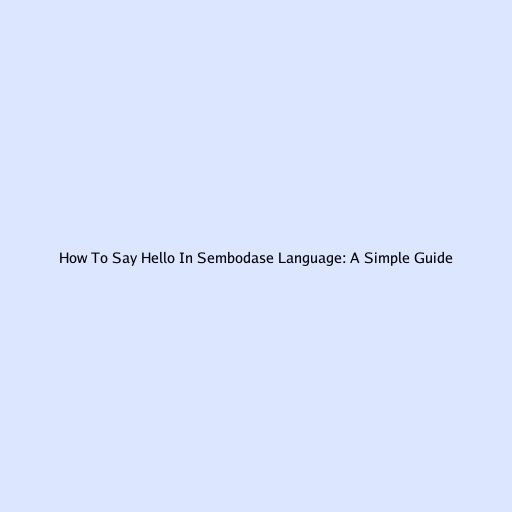 How To Say Hello In Sembodase Language: A Simple Guide