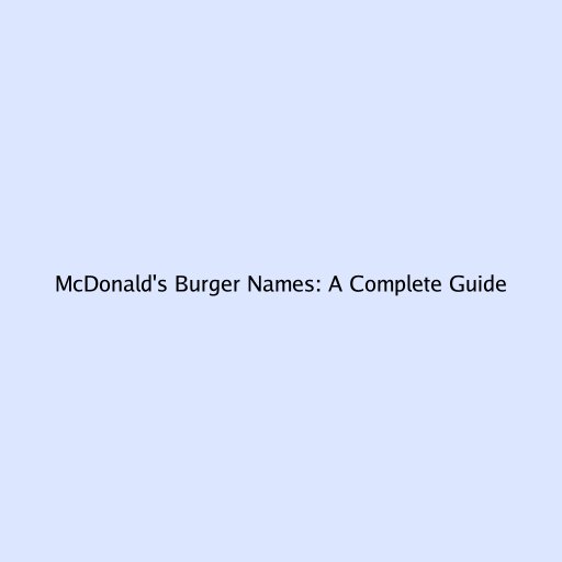 McDonald's Burger Names: A Complete Guide